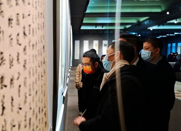 展厅内,篆、隶、楷、行、草等各类书法作品琳琅满目,可谓精品倍出,美轮美奂。许多参赛者和书法爱好者在一幅幅作品前流连忘返,交流着心得体会。