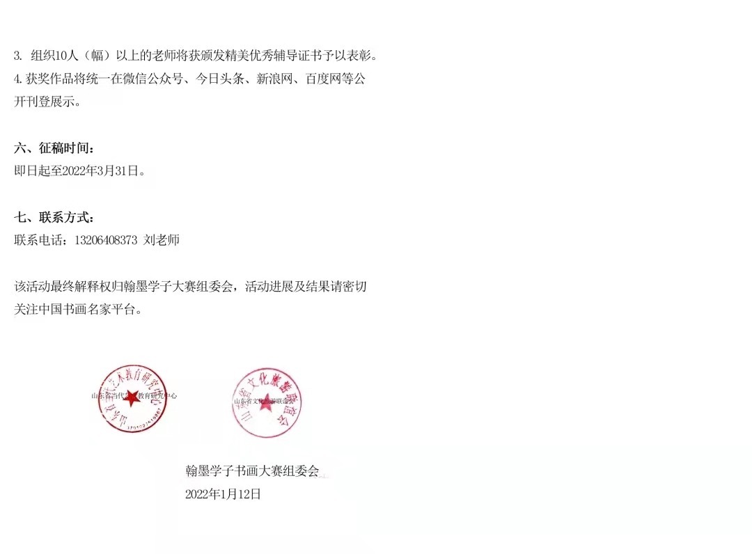 该活动最终解释权归翰墨学子大赛组委会,活动进展及结果请密切关注中国书画名家平台。